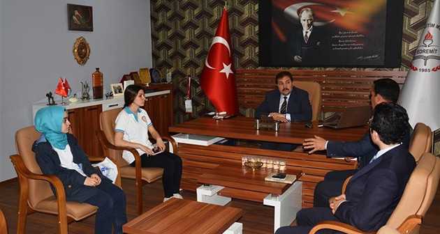 TÜBİTAK Ortaöğretim Öğrencileri Araştırma Projeleri kapsamında Kimya dalında Bursa Işıklar Askeri Lisesi’nin ardından Eskişehir Bölge ikincisi olan Fernur Sözen Mesleki ve Teknik Anadolu Lisesi Öğrencileri Aybuke Halıcı, Beyza Bayram ve Danışman Öğretmenleri Servet Arık, Okul Müdürü Ayhan Çelik ile birlikte İlçe Milli Eğitim Müdürü Yusuf Koç’u ziyaret etti.