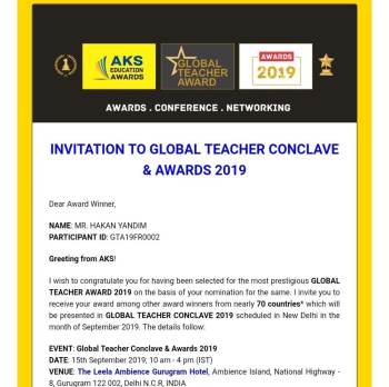 AKS Education tarafından her yıl düzenlenen ve 70’e yakın ülkedeki başarılı öğretmenlere ödülün verildiği tören 15 Eylül’de Hindistan’da gerçekleştirilecek. Yurt içinde yapmış olduğu projeler ile başarıları ile adından sıkça söz edilen öğretmen bu sefer küresel öğretmen ödülüne layık görüldü.