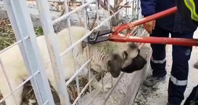 Olay, Aksaray Organize Sanayi Bölgesi'nde bulunan bir fabrikanın bahçesinde yaşandı. Edinilen bilgiye göre, fabrikada bulunan bekçi köpeğinin başı fabrikayı çevreleyen demir korkuluklara sıkıştı. Kafasını geçirdiği korkuluk demirinden çıkaramayan köpeğin havlamasını duyan vatandaşlar durumu itfaiyeye bildirdi. Kısa sürede olay yerine gelen Aksaray Belediyesi İtfaiye Müdürlüğü ekipleri makasla demirleri keserek köpeğin başını kurtardı.