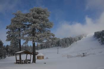 Kütahya’nın Gediz ilçesinde bulunan Kütahya ve Uşak’ın doğal sınırını oluşturan Murat Dağı Termal Kayak Merkezi’ne mevsimin ilk karı yağdı.