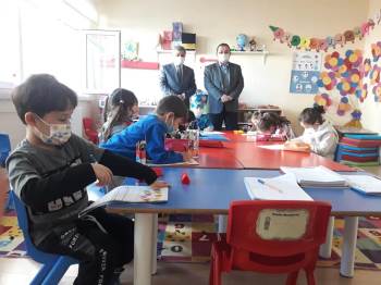 Başkan Arif Teke’nin Kur’an kursu ziyaretine İlçe Müftüsü Muammer Borlu eşlik etti. Ziyarette minik öğrencilerle yakından ilgilenen ve onlarla sohbet eden Başkan Teke, bir yandan da yetkililerden yapılan çalışmalar hakkında bilgi aldı. Kursta pandemi kurallarına harfiyen uyulduğunu görmekten çok mutlu olduğunu belirten Başkan Teke, çocuklara (Covid-19) ile ilgili bilgilendirmede ve uyarılarda bulundu.