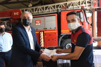 Başkanı Bakkalcıoğlu, orman yangınlarının söndürülmesi çalışmalarına destek veren itfaiye personeline teşekkür belgesi vererek ve çalışmalarında kolaylıklar diledi.