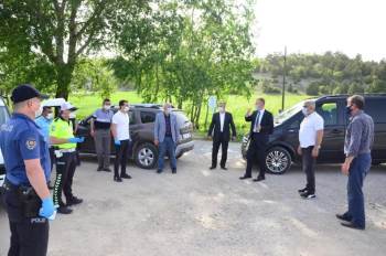 İl Başkanı Sebahattin Ceyhun, AK Parti İlçe Başkanı Ali Var ve Belediye Başkanı Fatih Çalışkan ile birlikte İlçe Hastanesini ziyaretinin ardından yeni karantina ilan edilen Hasanlar köyü girişinde yol kontrolü yapan jandarma ile Gediz yolunda uygulama yapan polis ekiplerini ziyaret ederek, özverili çalışmalarından dolayı teşekkür etti.