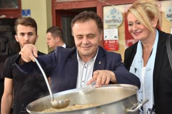 Bilecik Belediye Başkanı Semih Şahin ve eşi Serpil Şahin, çarşı merkezindeki esnaf işbirliğiyle hazırlanan aşureyi vatandaşlara ikram etti.