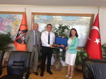 Başkan Tekin, ziyaret kapsamında Karayolları 14. Bölge Müdür Yardımcısı Servet Özbek’i ve Ramazan Yıldırım’ı da ziyaret etti. Tekin,ziyaretleri kapsamında Karayolları 14. Bölge Müdürü Mehmet Aşık’a ve yardımları Servet Özbek ve Ramazan Yıldırım’a Pazaryeri ilçesinin Kınık Köyünde çömlekten yapılan cezve ve fincan takımı hediye etti.