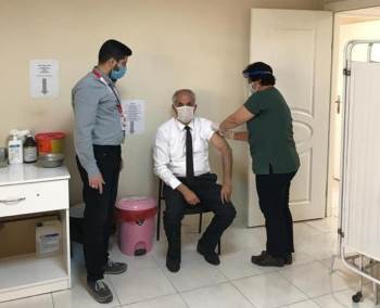 Başkan Yaman, Bayırköy Aile Sağlık Merkezi’nde korona virüsle mücadele kapsamında ilk doz aşını oldu. Aşı sonrası vatandaşlar aşı olmaları yönünde çağrıda bulunan Başkan Yaman, "Bugün sıramız geldiğinden dolayı Bayırköy Aile Sağlık Merkezine giderek Covit-19 için aşımızı olduk. Sırası gelen vatandaşlarımızın da aşılarını yaptırırlarsa bu salgınla mücadele edebiliriz. İnşallah bu şekilde aşı maske, mesafe ve temizlikle bu illet hastalıktan kurtulacağımıza yürekten inanıyorum. Bu vesileyle bu süreçte kendi hayatlarını hiçe sayarak canla başla mücadelelerini sürdüren tüm sağlık çalışanlarımıza teşekkürlerimi sunuyorum" dedi.