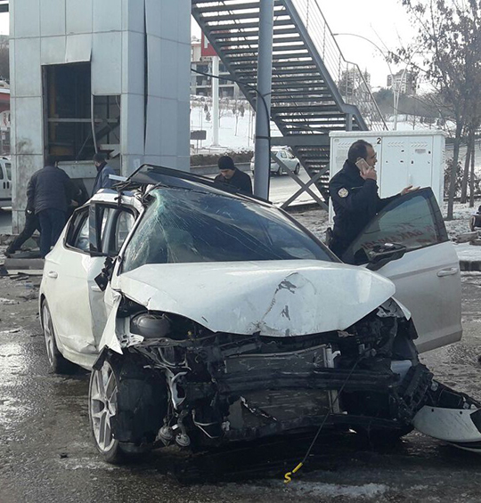Polat'ın yolun kaygan olması nedeniyle direksiyon hakimiyetini yeniden sağlayamadığı otomobil, üst geçidin yol kenarındaki ayağına çarptı.