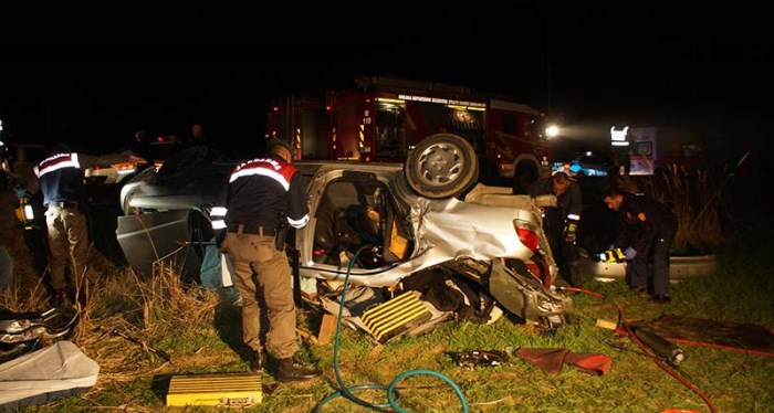 Kaza yerine polis, jandarma, itfaiye ve ambulans ekipleri sevk edildi. İtfaiye yardımıyla sıkıştıkları yerden çıkartılan sürücü Hasan, eşi Şerife (53) ve kızı Büşra Uslu'nun (20) yaşamını yitirdiği belirlendi.