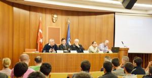 Eski basketbol antrenörü Aydın Örs, Çetin Yılmaz, Hakan Yavuz ve eski basketbolcu Bülent Karpat ile Spor Bilimleri Fakültesi öğretim üyesi Yrd. Doç. Dr. Veli Onur Çelik’in katıldığı panelde basketbol masaya yatırıldı. Altyapı antrenörlüğün önemine değinen Aydın Örs, “Basketbol hayatınızda çok enstantane vardır. Önünüzden saniyede veya salisede geçer pozisyonlar. Deneyimsiz olunca karar veremiyorsunuz. Altyapıda yıllarca çalışmaktan imtina etmeyiniz. Altyapı antrenörlüğü sabır işidir. Bir an içinde beklenti içine girmeyin. Altyapı antrenörlüğünde en önemli şey yetenekli oyuncuları araştırıp bulmak ve o oyuncuları doğru yöntemlerle çalıştırmak. Altyapı antrenörlüğünde en önemli görev oyunculara oyunu sevdirmek bunu unutmayın” dedi.