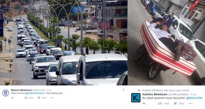 Bodrum Belediyesi'nin bu tweet'ine yanıt gecikmedi. Kadıköy Belediyesi bu tweet'e yanıt olarak ilginç bir fotoğraf kullandı ve üstüne 'Bu sabah gelenleri böyle karşıladık' diye yazdı.