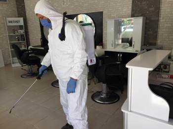 Bilecik Belediyesi Veteriner İşleri Müdürlüğü tarafından gerçekleştirilen çalışmada 71 adet berber, kuaför ve güzellik salonu dezenfekte edilerek,çiçek gibi oldular. Sabah saatlerinde Sokak Hayvanları Tedavi ve Rehabilitasyon Merkezinde bir araya gelen ekipler, sırasıyla ildeki bütün kuaför, berber ve güzellik salonlarını dezenfekte etmek üzere göreve başladı.