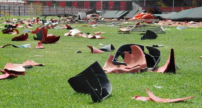 Toto Süper Lig’in 33. haftasında Eskişehirspor’un evinde Medipol Başakşehir’e 2-1 mağlup olmasının ardından taraftarlar tribünleri ateşe vermişti. Atatürk Stadyumu’ndaki bilanço ise gün ağarınca ortaya çıktı. Stadyumdaki koltukların tamamına yakınının tahrip edildiği, kale direklerinin yerinden söküldüğü ve reklam panolarının ateşe verildiği görüldü. Tamamen harabeye dönen tribün ve sahada zararın, noterin yapacağı hasar tespitinin ardından netlik kazanacağı öğrenildi.