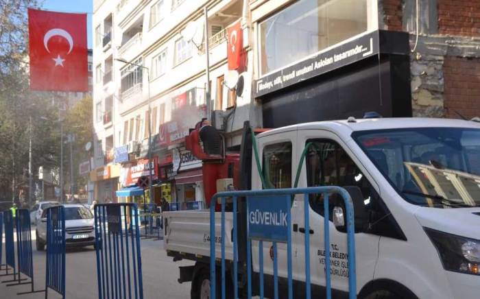 Bilecik'te şehit Hava Uçak Bakım Astsubay Üstçavuş İlhan Ongan'ın cenaze töreni için dünden bu yana hummalı bir çalışma yapılırken, belediye tarafından kent merkezi gül suyuyla bezendi.