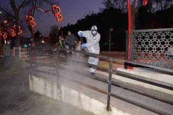 Akşam saatlerinde başlayan dezenfekte çalışmaları ile başta şehir merkezindeki eski otogar olmak üzere, park ve piknik alanları, dinlenme ve eğlenme alanları, aile çay bahçesi, banka ATM noktaları, kurumların kapı ve giriş alanları, çay bahçelerindeki masa ve sandalyeler ile otogardaki bütün otobüslerde dezenfekte çalışmaları yapıldı.