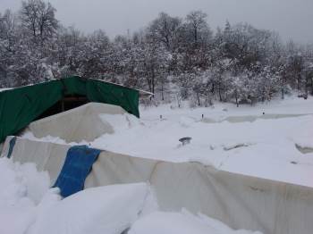 Bilecik’in Pazaryeri ilçesinde üç gündür aralıksız devam eden kar yağışı sonucu içinde küçükbaş hayvan beslenen çadırdan yapılmış bir ahırın çatısı çökerken, şans eseri hayvanlar zarar görmedi