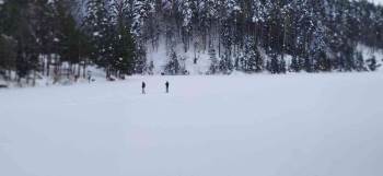 Donan gölet üzerinde yürüyen vatandaşlar bir de ayaklarıyla karın üzerine Bozcaarmut yazdılar. 7’den 70’e herkesin bu doğa harikasını görmek için bölgeye akın ederken, kurulan stantlarda sucuk ekmek yemeği de ihmal etmediler.