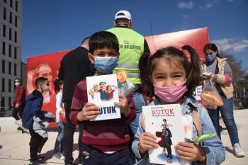 Cumhuriyet Meydanında sabah düzenlenen 23 Nisan Ulusal Egemenlik ve Çocuk Bayramı kutlamaları çerçevesinde kurulan stantta, çocuklara şeker, renkli maskeler, balon ve çocuklar için hazırlanan Nutuk kitabı hediye edildi. Çocuklara ayrıca Belediye Başkanı Semih Şahin’in 23 Nisan Ulusal Egemenlik ve Çocuk Bayramı mesajı iletildi.