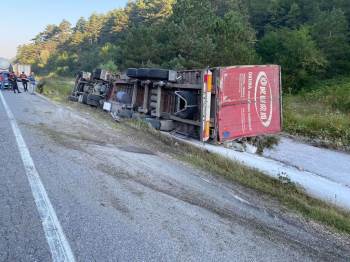 Bilecik’Te Devrilen Tırın Sürücüsü Yaralandı