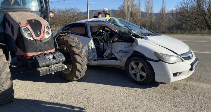 Bilecik’te seyir halindeki bir otomobilin kontrolden çıkarak traktöre çarpması sonucu meydana gelen trafik kazasında biri çocuk olmak üzere 3 kişi yaralandı. Alınan bilgilere göre kaza, Bilecik–Vezirhan–Gölpazarı karayolunda yaşandı. 07 RN 042 plakalı otomobilin sürücüsü Ahmet Ö., henüz bilinmeyen bir nedenle direksiyon hâkimiyetini kaybetti. Kontrolden çıkan otomobil, Gölpazarı’ndan Beşevler Köyü istikametine seyir halinde olan Rüstem Ü. yönetimindeki 11 AAB 734 plakalı traktöre çarptı.