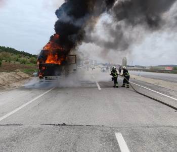 Edinilen bilgiye göre, Bilecik-Yenişehir karayolunda ilerleyen 06 EGK 437 plakalı hafriyat kamyonu bilinmeyen nedenden dolayı alev aldı. Olay yerine itfaiye ekipleri çağrıldı. Ekiplerinin müdahalesi sonucu yangın kısa sürede söndürüldü. Araçta maddi hasar oluştu.