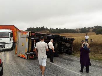 Seyir Halindeki Kamyon Devrilirken, Sürücüsü Kazayı Yara Almadan Atlattı