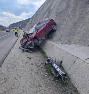 Bilecik'te Kontrolden Çıkarak İstinat Duvarına Çarpan Otomobilin Sürücüsü Yaralandı.