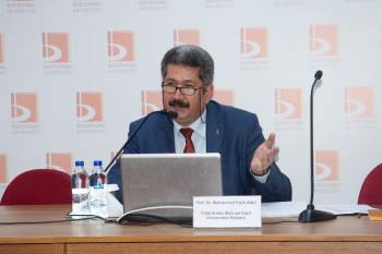 Dinleyicilerin büyük beğeni ve dikkatle takip ettiği konferansın sonunda Prof. Dr. M. Fatih Andı’ya Rektör Prof. Dr. İbrahim Taş tarafından anı tabağı hediye edildi.
