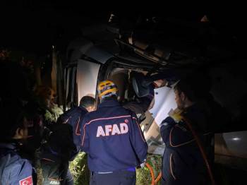 Bilecik’Te Seyir Halinde Tır Devrildi, Sürücü İçinde Sıkıştı