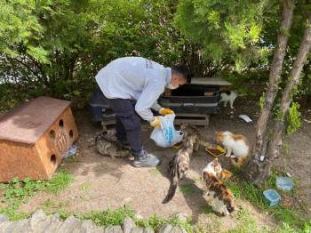 Bilecik Belediyesi Veteriner İşleri Müdürlüğü ekipleri tarafından şehrin birçok noktasına sokak hayvanları için yem ve su bırakıldı.