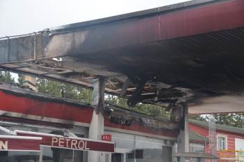 Sabah ilk ışıklarından itfaiye ekiplerinin olay yerinden ayrılmasının ardından istasyon çalışanları temizlik işlemlerine başlattı. Akaryakıt istasyonu üzerinde sundurma kısmı büyük hasar görürken, müdüriyet ve market kısmı da yangın nasibini aldı. Elektrik kontağından çıkmış olabileceği belirtilen yangın iş yerine büyük hasar verirken, restoran kısmı kül oldu. Tek teselli alevlerin yakıt depolarına ulaşamaması oldu.