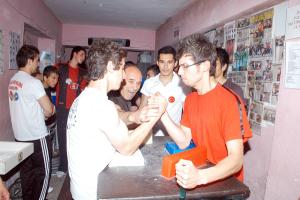 Gençlik Hizmetleri ve Spor İl Müdürlüğü bünyesinde çalışmalarını aralıksız sürdüren bilek güreşi ekibi antrenmanlarına devam ediyor.