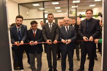 Protokol üyeleri açılış kurdelesinin kesilmesinin ardından fuarda sergilenen standlar gezerek öğrencilerden projeler hakkında bilgi aldı.