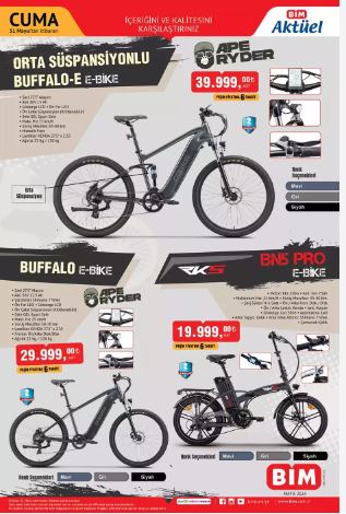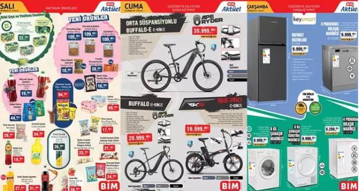 Ancak en dikkat çekici ürünler cuma günü satışa sunulacak. Elektrikli bisikletler, BİM'in bu haftaki sürprizi olarak karşımıza çıkıyor. APE RYDER Buffalo E-Bike ve RKS BN5 PRO E-Bike modelleri, özellikle şehir içinde ulaşım sağlamak isteyenlerin ilgisini çekecek. Bu ürünlerin yanı sıra Kumtel Turbo Siyah Cam Ankastre Set, Range Sopt Cleaner Koltuk Halı Temizleme Makinesi ve Fakir Islak Kuru Şarjlı Süpürge de BİM mağazalarında satışa sunulacak.