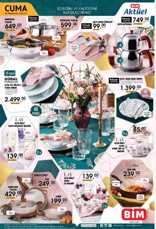 BİM'in düzenli olarak yayınladığı aktüel kataloglar, alışveriş yapmadan önce müşterilerin bir fikir sahibi olmalarına yardımcı oluyor. Böylece, hangi ürünlerin indirimli olduğunu önceden öğrenerek, bütçelerini daha iyi yönetebiliyorlar. BİM'in bu haftaki aktüel kataloğuna göz atarak, ihtiyaçlarınızı karşılayacak ürünleri uygun fiyatlarla satın alabilirsiniz.