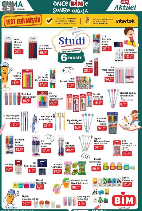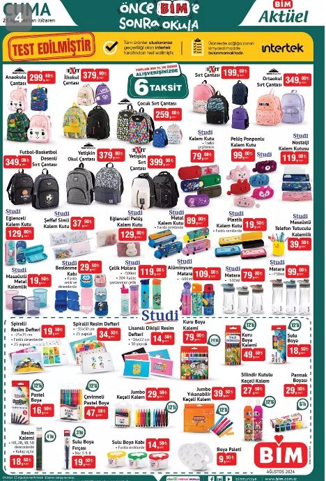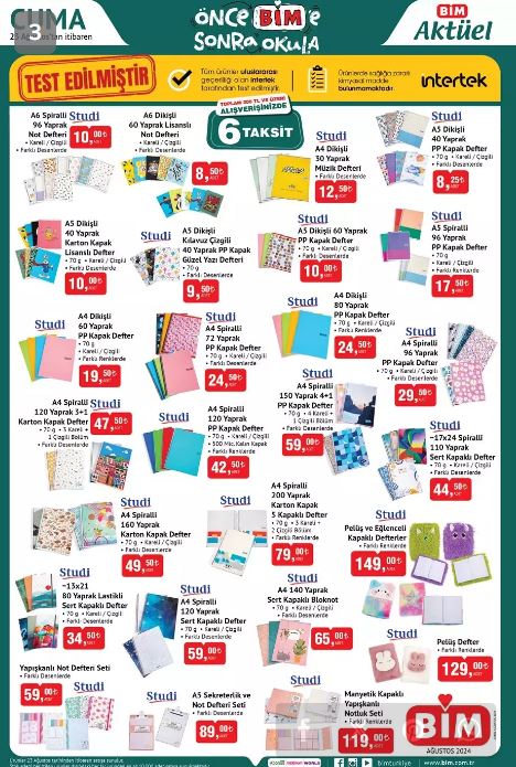 BİM marketlerde, normal dönemde satışı olmayan ürünler, aktüel ürün katalogları aracılığıyla müşterilerin beğenisine sunuluyor. Her hafta Salı ve Cuma günleri yayınlanan özel kataloglar, müşterilerin mağazadaki ürünlerle buluşmasını sağlıyor. Bu hafta Cuma günü yayınlanan aktüel katalogda farklı ürünler yer almazken, kırtasiye ürünlerinden oluşan bir katalog satışa sunuldu. İşte bu hafta Cuma günü BİM'de satışa sunulan kırtasiye ürünleri kataloğu ve önümüzdeki hafta satışa çıkacak tüm kataloglar.