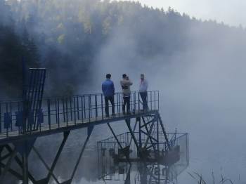 Bilecik’in Pazaryeri ilçesinde bulunan bin 200 metre rakımlı Bozcarmut Göleti, yaz ve kış ayrı güzelliği ile göz kamaştırıyor.
