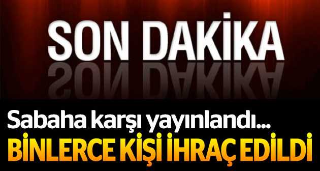 Resmi Gazete'de yayımlanan 677 sayılı KHK kapsamında kuvvet komutanlıkları, Jandarma Genel Komutanlığı, Emniyet Genel Müdürlüğü ile bakanlıklar ve bağlı kuruluşlarında toplam 15 bin 726 kamu çalışanı hakkında meslekten ihraç kararı verildi. Daha önce meslekten ihraç edilen 157 kamu çalışanı görevlerine iade edildi.