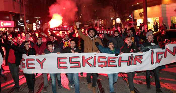 Dün Eskişehir Valisi Azmi Çelik ile bir araya gelen Eskişehirspor Başkanı Halil Ünal, yönetimin istifasını iletmişti. FIFA'daki alacaklı dosyalarını gösteren Başkan Ünal, çarşamba gününe kadar gerekli ödemelerin yapılmaması takdirde takımın sıkıntıya düşeceğini aktarmıştı. Bunun üzerine gerekli paranın toplanması için kollar sıvanırken, Eskişehirspor'a gönül vermiş binlerce taraftar, İsmet İnönü caddesi üzerinde toplandı. Takımın yalnız olmadığını belirten taraftarlar, Eskişehirspor'un yok olma ile karşı karşıya kaldığını söyledi. Bu sırada polis ekipleri de geniş çaplı güvenlik önlemi aldı.