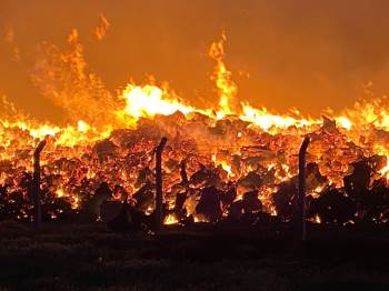 Afyonkarahisar’In Çay İlçesinde Biyoenerji Elektrik Santralinin Cüruf Diye Adlandırılan Açık Deposunda Çıkan Yangın Sürüyor
