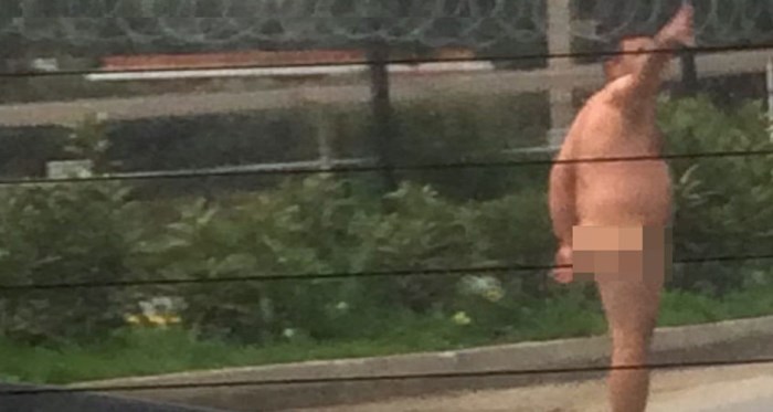 O sırada bölgeden aracı ile geçen vatandaş çıplak şahsı görünce şaşkınlığını gizleyemedi.