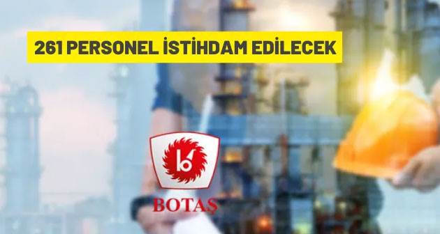 Boru Hatları ile Petrol Taşıma A.Ş. (BOTAŞ), çeşitli branş ve unvanlarda sözlü sınavla 261 personel alımı yapacak.