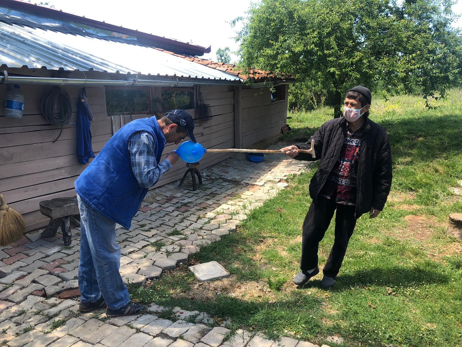 Korona virüs tedbirleri kapsamında vatandaşların bulduğu ilginç yöntemlerden kimi düşündürürken, kimi ise gülümsetiyor. Bursa'nın İznik ilçesinde bir ailenin sosyal medyadan görerek uyguladığı bayramlaşma yöntemi ise görenleri şaşırttı. İznik ilçesinin Sarıağıl Mahallesi'nde yaşayan Yılmaz ailesi, bayram sabahı bir araya geldi. Sosyal mesafeye riayet eden aile bireylerinden gençler, büyüklerinin ellerini öpmek yerine korona virüs tedbirlerine uyarak aile büyüklerinin ellerindeki sopalara şişirdikten sonra bağladığı eldivenleri öptü. Gençlerin ve aile büyüklerinin ilginç anları herkesi gülümsetti.