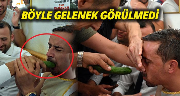 Pazaryeri'nde hayatlarını birleştiren Ufuk Öztosun ve Kübra Ufuk çiftinin düğününde de tüm ritüeller gerçekleştirildi. Bir kahvehaneye çağrılan Ufuk Öztosun'a onlarca çeşit yiyecek yediren arkadaşları, son olarak kedi maması verince damadın dayanamaması üzerine şakayı kısa kesti.