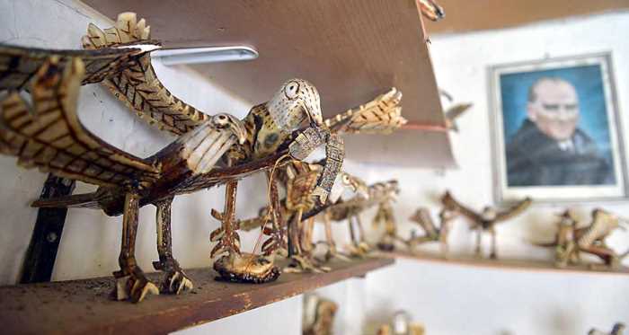 "Daha sonra araştırmalarım sonucu Danimarka'dan özel bir yapıştırıcı getirterek geyik boynuzundan ilk heykelimi tamamladım. Kartaldan sonra insan figürlerine yöneldim. Zamanla hayal ürünü heykeller yapmaya başladım. Hayallerimi maddeye çevirdim. Geyik boynuzundan heykel yapmak bana mutluluk veriyor. Şu ana kadar sayısı 500'ü aşan heykelim var. Heykelleri gören herkes şaşırıyor."