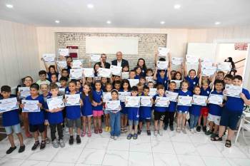 Bozüyük Belediyesi tarafından düzenlenen yüzme ve satranç kursunu başarı ile tamamlayan öğrenciler katılım belgelerini Bozüyük Belediye Başkanı Mehmet Talat Bakkalcıoğlu’nun elinden aldı.