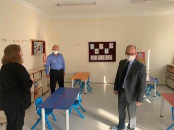 Bu kapsamda Halime Hatun Anaokulu ve Vilayetler Hizmet Birliği Anaokullarını ziyaret eden Yaman ve Demir, Okul Müdürleri Buket Tunalı ve Ömer Oğuz Yıldırım’dan yapılan hazırlık çalışmaları ile alakalı bilgi alarak derslikleri gezdiler. İlçe Milli Eğitim Müdürü Mahmut Demir, Pazartesi günü başlayacak kademeli eğitim öncesinde ilçedeki okullarda gerekli çalışmaların tamamlandığını kaydetti. Demir, “Milli Eğitim Bakanlığımızın talimatları doğrultusunda 21 Eylül’de yüz yüze eğitim öğretime okul öncesi öğrencileri ve ana sınıfı öğrencileriyle velilerinin rızası doğrultusunda başlayacağız. İlk uyum haftasında bir gün, ikinci uyum haftasında 2 gün okul olacak. 3.’üncü haftanın sonunda diğer kademelerde ve sınıflarda yüz yüze eğitim öğretime başlama konusu yeniden değerlendirilecek. Veliler isterlerse öğrencilerini yüz yüze eğitime göndermeyebilecekler. Öğrenci uzaktan eğitime devam edecek ve devamsız sayılmayacak. Sınıf mevcudu yüz yüze eğitim için gruplara ayrılarak azaltılacak. Çocukların okulda kalış süreleri kısaltılacak. Eğitim, yüz yüze eğitime ek olarak uzaktan eğitim yolu ile devam edebilecek. Birinci sınıf öğrencileri seyreltilmiş sınıflarda sosyal mesafeli temassız oyun oynayacak. Bu süreci öğretmenler omuzlayacak. 1.’inci sınıf öğrencilerine EBA’da uzaktan eğitimi sevdirebilmek için oyun tabanlı dijital içeriklerde hazırlandı. Biz de İlçe olarak Bakanlığımızın talimatlarına uygun olarak çalışmalarımızı tamamladık. Pazartesi gününden itibaren okullarımızın kademeli olarak açılması yönündeki hazırlığımız tamamdır” dedi.