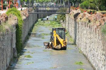 Bozüyük Belediyesi Temizlik İşleri Müdürlüğü ekipleri tarafından ilçenin ortasından geçen açık kanallarda temizlik çalışmaları başlatıldı.