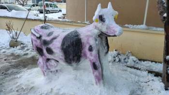 Bilecik’İn Bozüyük İlçesinde İlçe Tarım Müdürlüğünde Görevli Veteriner Hekimler Mesleklerini Karla İcra Ederek Kurum Bahçesine Kardan İnek Yaptı.