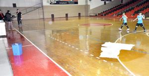 Atatürk Spor Salonu’nun çatısının akıtması, dün okullararası küçük erkekler basketbol...