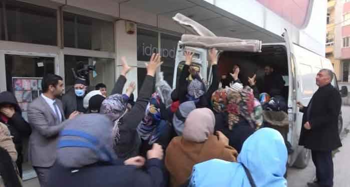 Hızır Reis Caddesi Çiğdem Sokak'taki AVM'de faaliyet gösteren bir halı mağazasının açılışa özel ilk gelen 100 kişiye ücretsiz halı dağıtacağını duyan vatandaşlar, mağaza önünde saatler öncesinden kuyruk oluşturdu. Halıların bulunduğu minibüsün gelmesiyle çok sayıda vatandaş minibüse doğru hücum etti. Vatandaşlar minibüsün arka kapısından atılan halıları havada kapmak için adeta birbiriyle yarıştı. Meydana gelen izdihamda bir kadının, diğer bir kişinin elindeki halıyı almak için bağırdığı ve ayağındaki terliği çıkardığı görüldü. Birkaç kadın ise izdiham sebebiyle firma yetkililerine tepki gösterdi.